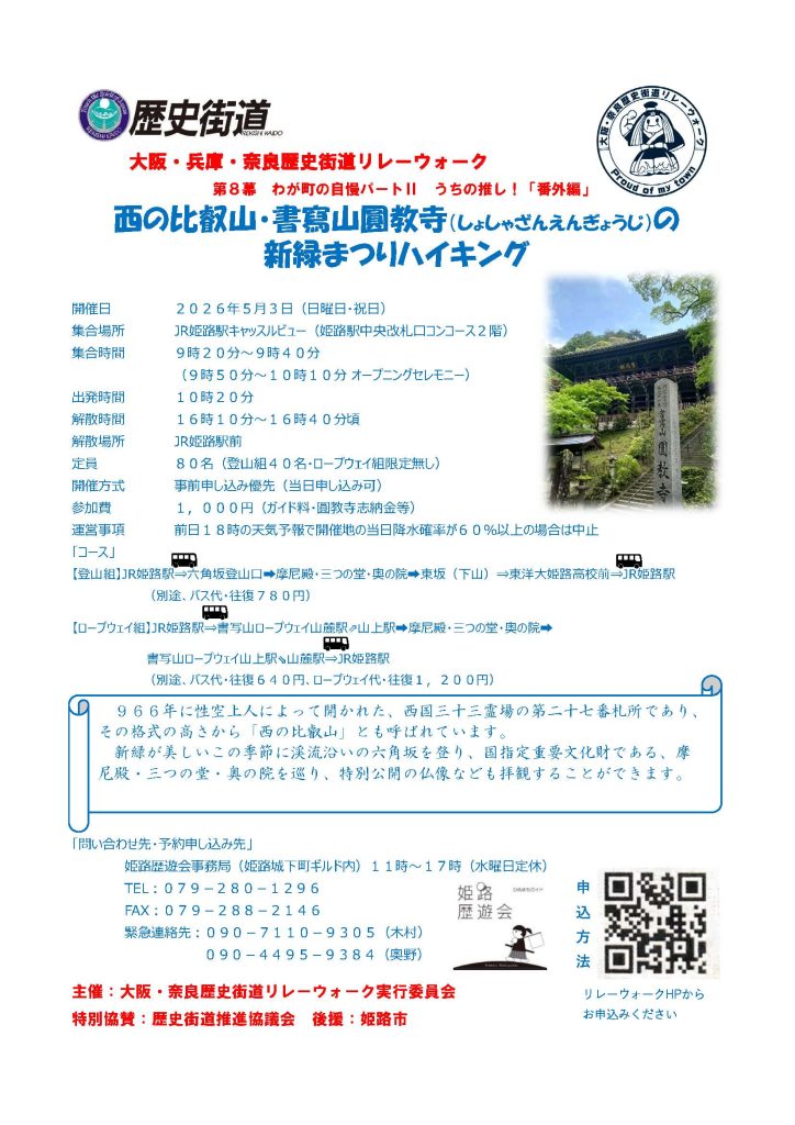 | 解散予定 | 姫路駅 健脚コース16時40分頃 一般コース16時10分頃 |